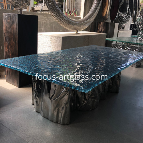 BLUE GLASS TOP AND STAINLESS BASE